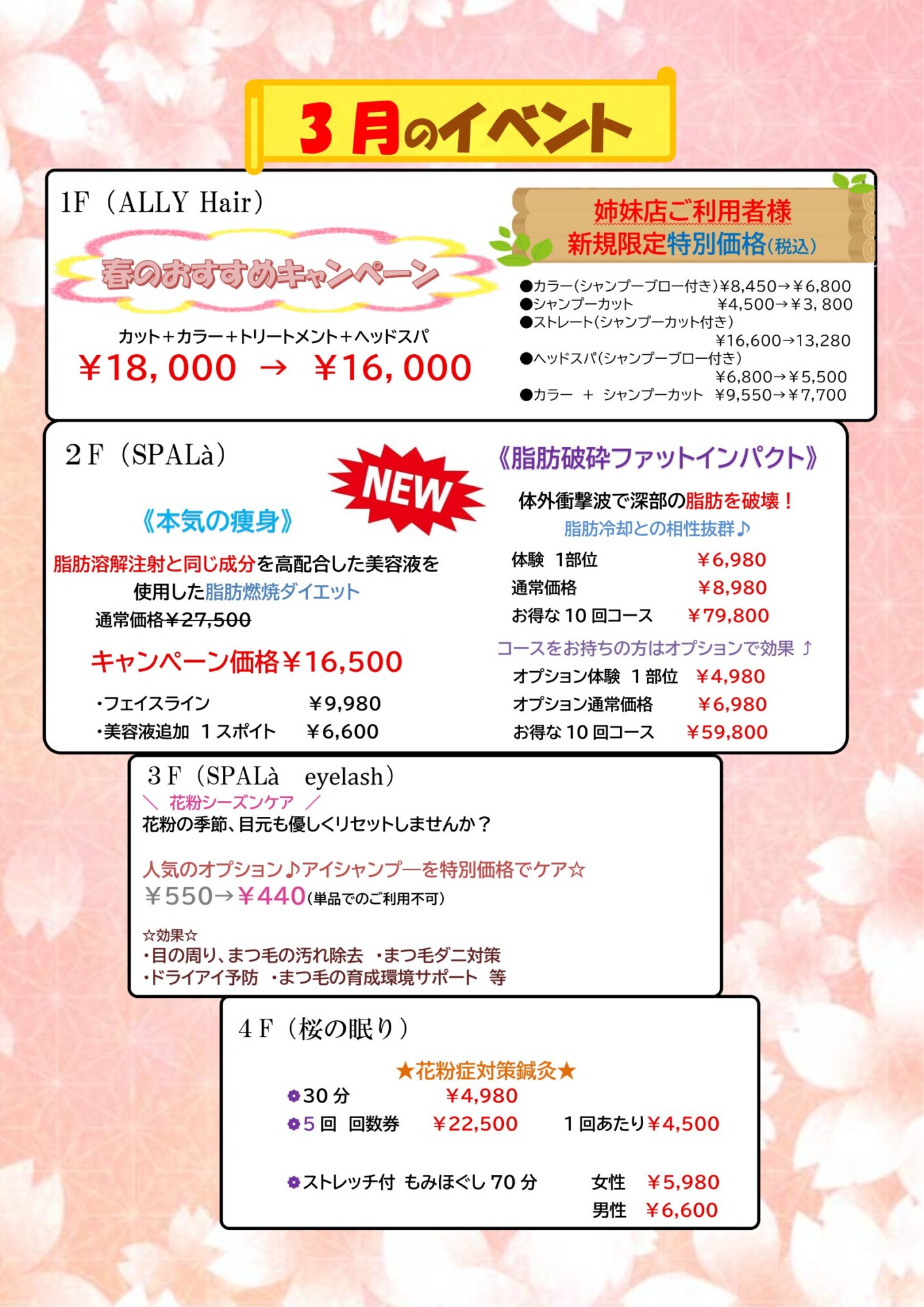 いつも「ALLY Hair」「SPALa」「SPALa Eyelash」「アクティヘアクリニック」「桜の眠り」「颯月めだか」をご利用いただき、誠にありがとうございます😌🙏