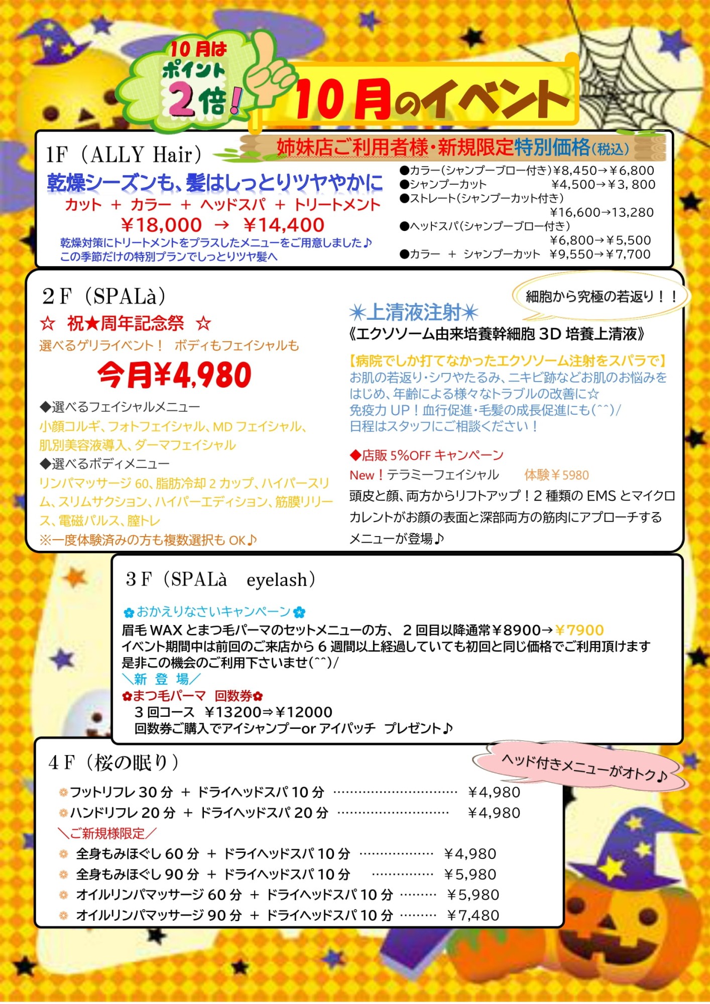いつも「ALLY Hair」「SPALa」「SPALa Eyelash」「アクティヘアクリニック」「桜の眠り」「颯月めだか」をご利用いただき、誠にありがとうございます😌🙏